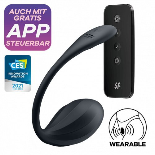 - Compatible with the free Satisfyer App - Available on iOS and Android.- This device can be worn due to ist ergonomic shape.- Powerful motor transmits intense vibration rhythms throughout the entire toy.Features:- 15-year guarantee- Wearable due to ergonomic design- Super-strong deep vibration- With wireless remote control- Body-friendly silicone- Waterproof (IPX7)- Can also be used without the app- Preset programmes can be edited- App offers an unending range of programmes- Whisper mode- Magnetic USB charging cable included- Rechargeable Li-ion battery- Easy to clean.Product details